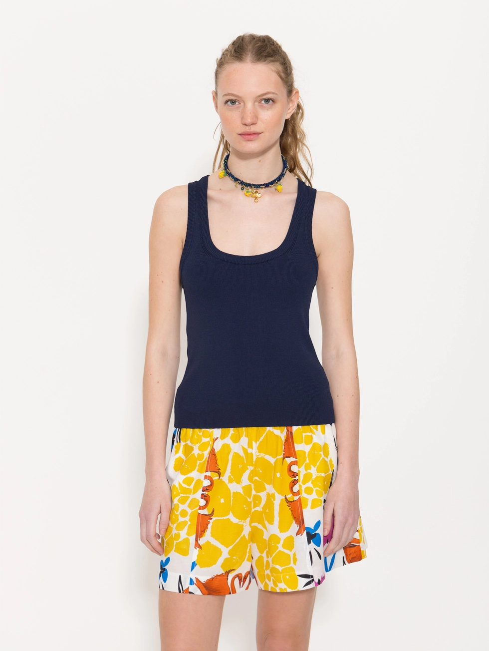 Top Miranda tipo musculosa confeccionado en tejido de punto, de escote redondo y calce al cuerpo.