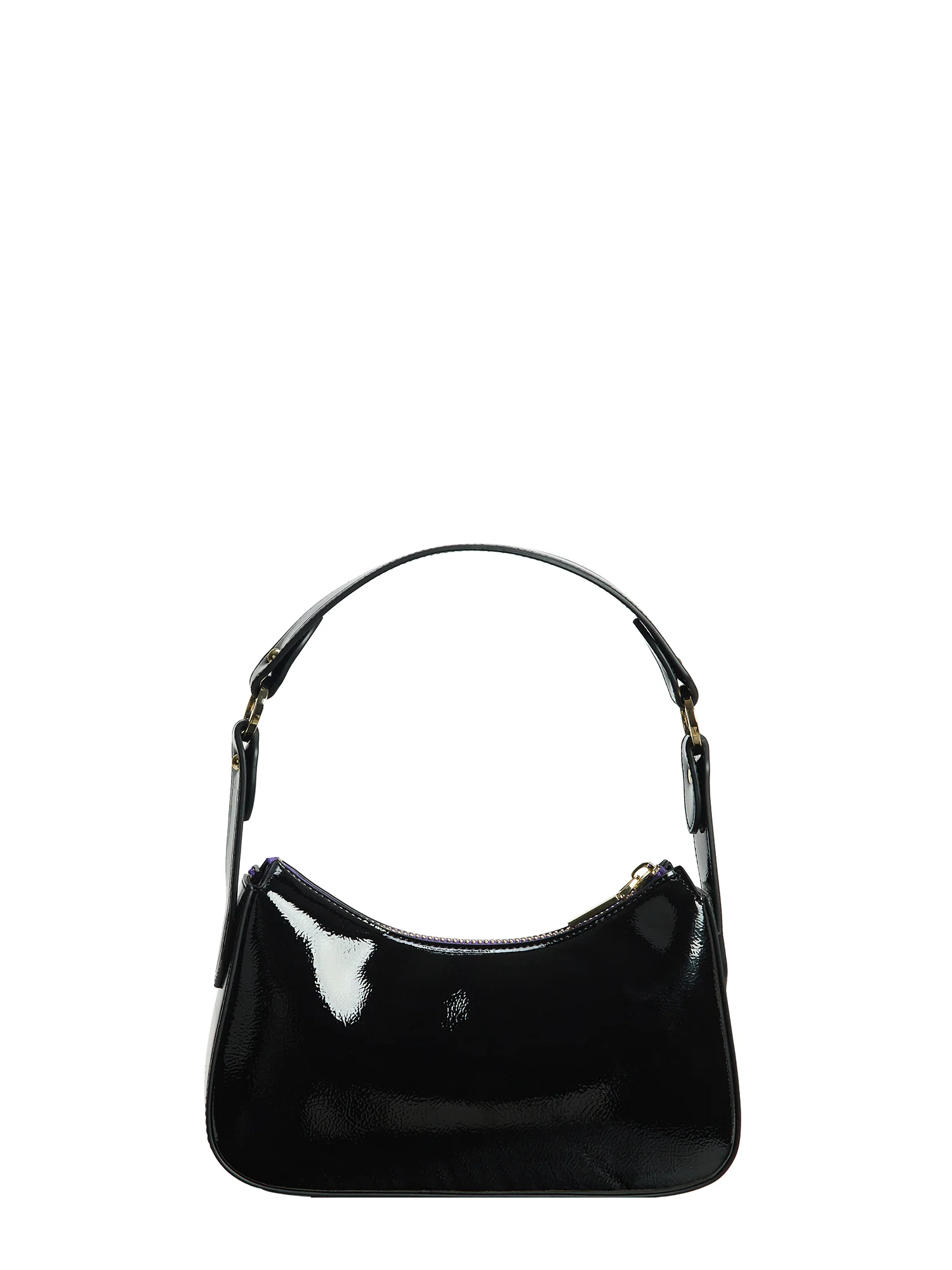 Este mini bag de líneas depuradas y silueta curva combina el acabado pulido del charol con acentos cromáticos que lo elevan. Su manija ancha y estructurada, con nuestras signature stripes estampadas en serigrafía, aporta un contraste visual inesperado que infunde una actitud contemporánea. Compacto aunque expresivo, su diseño fue pensado para acompañarte tanto en salidas nocturnas como en looks diurnos de alto impacto. El interior forrado, el cierre metálico dorado y la estructura firme construyen una pieza que se mueve con soltura entre la función y el gesto.