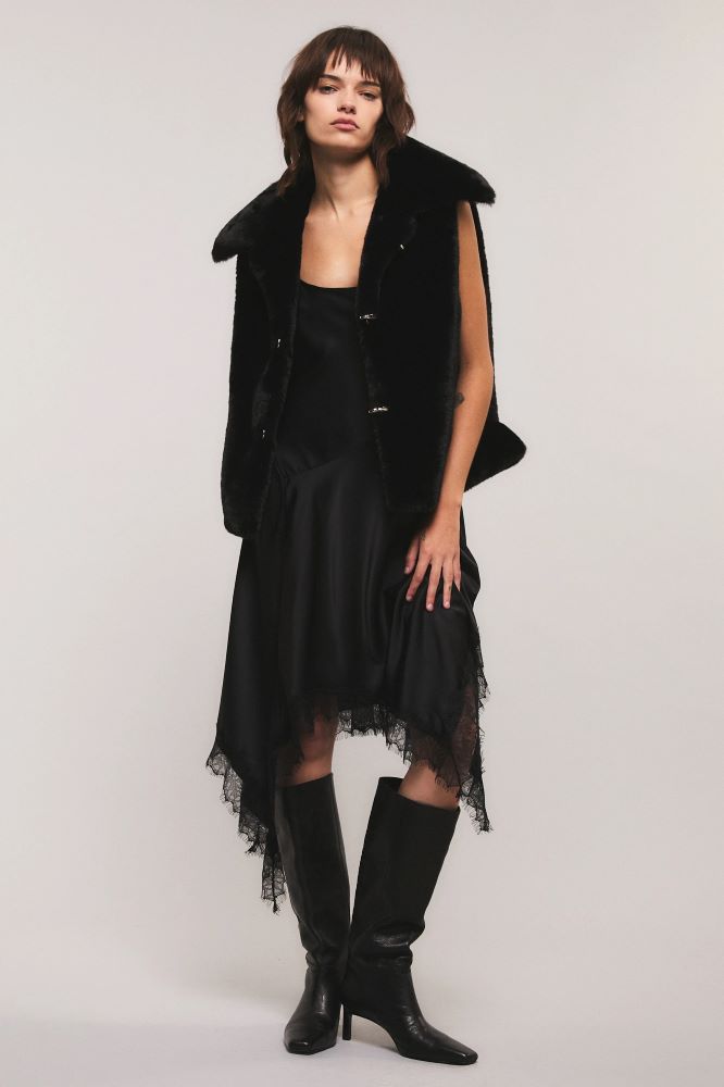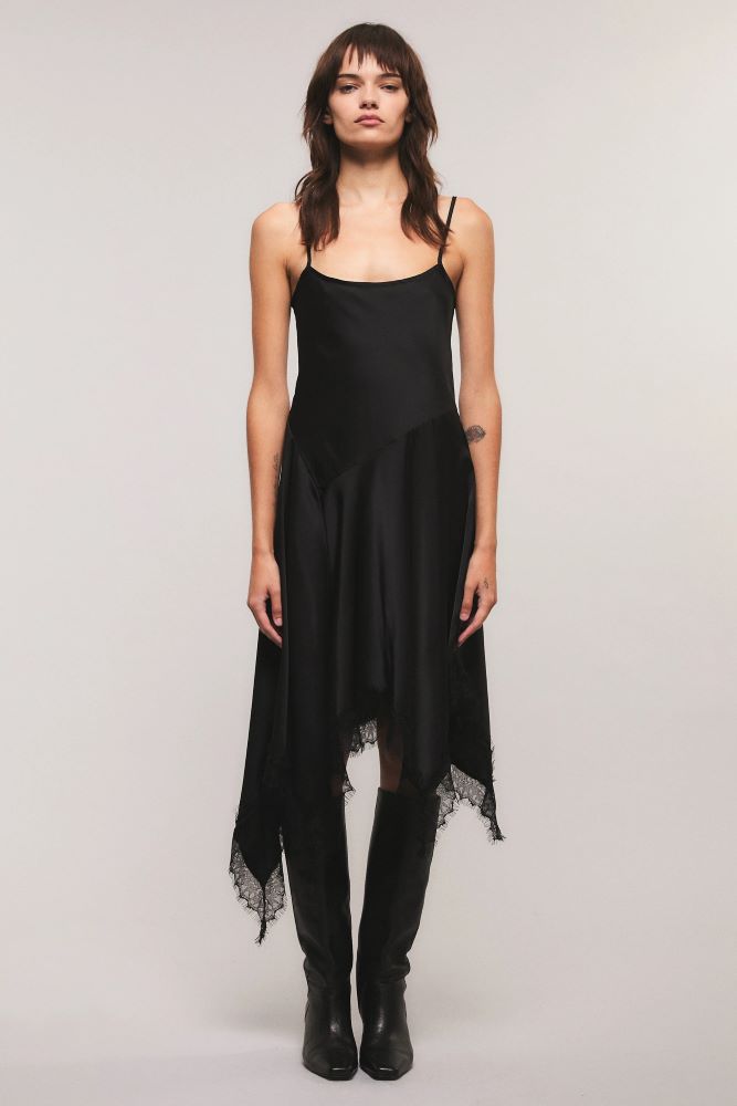 El vestido Classic Muse esta cortado al bies y confeccionado en satén suave al tacto. calce regular. Largo midi asimétrico. El escote es de estilo lencero y tiene breteles regulables. Su falda es amplia con movimiento y esta terminado con una delicada puntilla en todo ruedo.Miranda está usando en la prenda superior un talle S, y en la prenda inferior un talle S/26. Sus medidas son: Altura 1.73 m. Busto 77 cm. Cintura 59cm. Cadera 85cm.