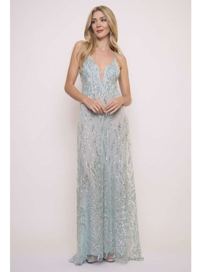 Vestido corto de seda combinado con paillette y flecos bordados de paillette