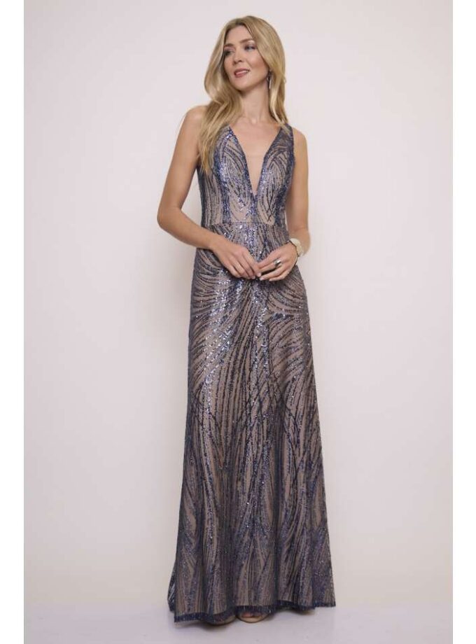 Vestido al cuerpo corte sirena de paillette con escote buche bajo y espalda descubierta